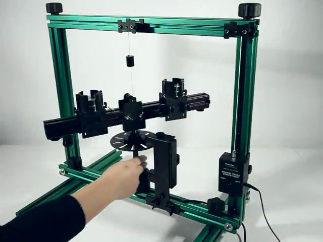 The Centripetal Force Apparatus allows you to investigate the relationship between centripetal force, angular velocity, mass, and radius.