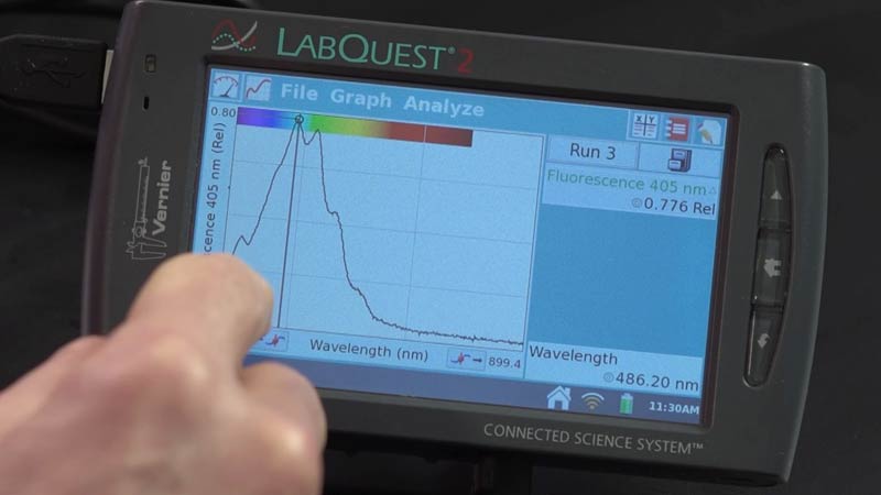 Connect SpectroVis Plus to a LabQuest or a computer running Logger Pro using a standard USB cable (included), and see the results in full color.