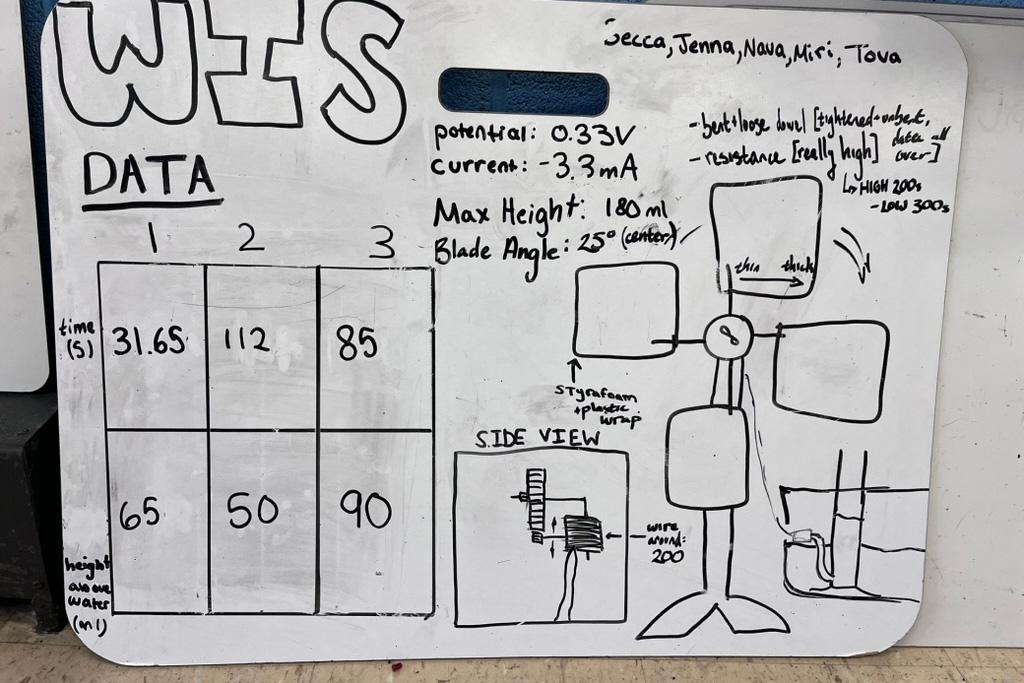 Chris hasn’t yet fully explored one extension question with his students: If you connected the class’s turbines together into a small wind farm, should they be wired in series or parallel to maximize pumping power? By Phase 5, students have everything they need to work that out.