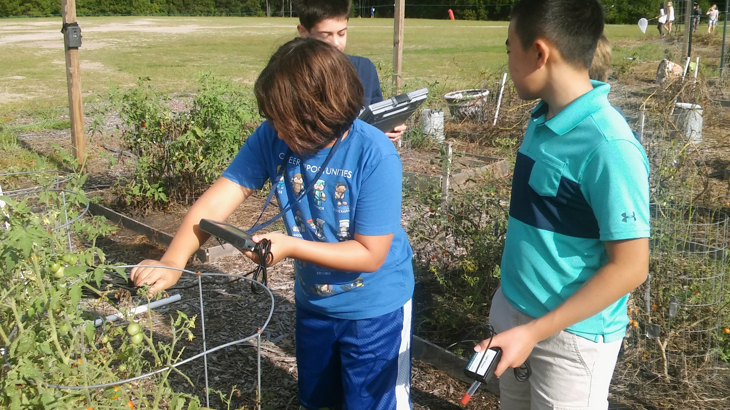 Students also use data-collection technology—such as soil moisture, pH, and light sensors—in conjunction with our school’s large 5,000 sq. ft. garden that features a greenhouse, 44 raised beds, 30 plant containers, wildflowers, berries, and more. Students create and test shade structures for the garden, as well as collect harvest results to determine which plants grow best in our area.
